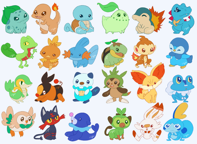 #bulbasuar #charmander #chikorita #cyndaquil #litten #mudkip #squirtle #torchic #totodile #treecko #chimchar #piplup #turtwig #rowlet #snivy #tepig #sobble #chespin #fennekin #froakie #popplio #scorbunny #grookey #oshawott