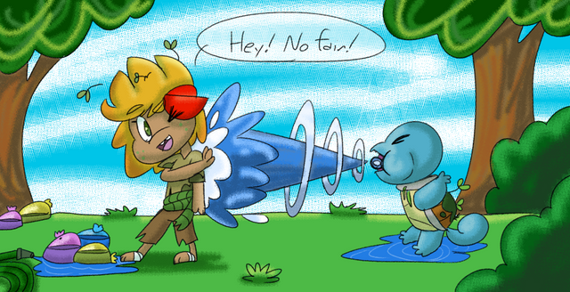 Request from BEIMAR1234676767Jerry was just walking but he was ambushed by a Squirtle. He went with his instincts and hit! I think he hit too hard though.