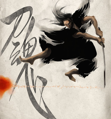 Great work! The pose and splash designs makes it look like he ran the sword across the ground.
