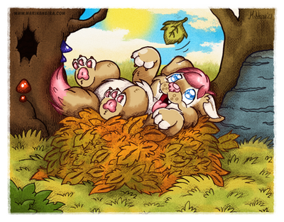 And this background... Awesome! I love your background's style! This sky, this grass, this pale of leaves! That's all look fantastic!