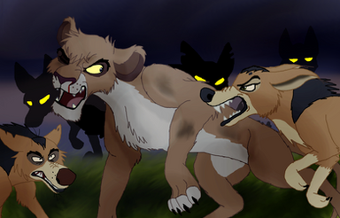 "No. L-L-L-Le-Le-Le-Le-Let me explain. No. You don't understand. No! I didn't mean for... No, No! Look, I m sorry I called you... No! NOO!"The roaring fire and the manic laughter from the hyenas quickly drowned out the cries and screams from any onlookers. Likewise the smoke hid them all and as the clan fell on the lion, three hyenas in particular walked slower towards the scene. It was almost as if they were waiting for the rest to do the dirty work.