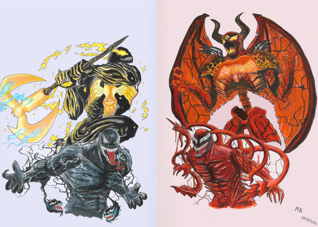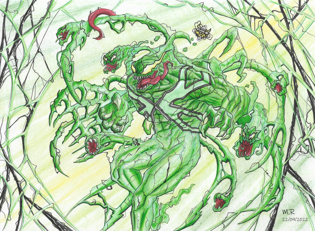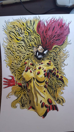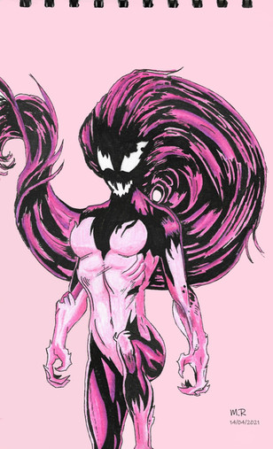 This was a request from a friend. He is a mad fan of Symbiotes as you will see with my other similar works. Based on a Marvel cover of Scream, from King in Black series. Used a A5 sketchpad. 2nd work with markers.Related content