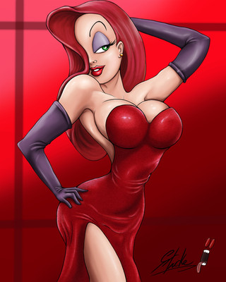 Image 4 of 5 of some line art I had colored.... Jessica Rabbit in a glamour pose.Digital coloring by:
