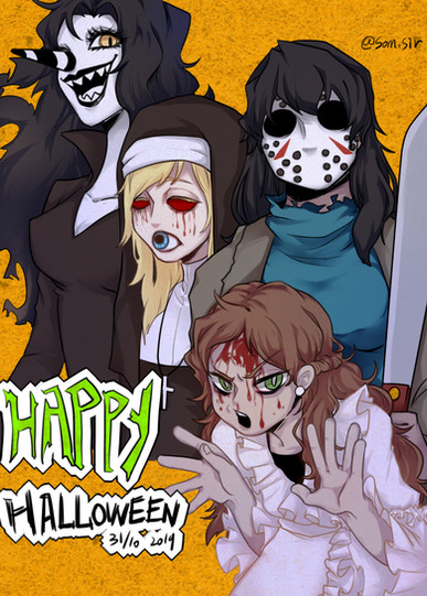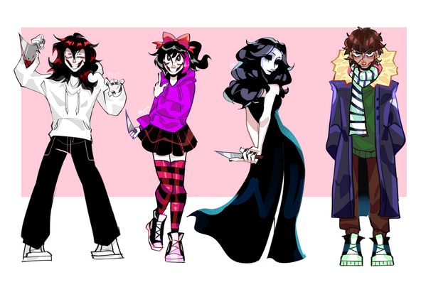 I did this on women's day, and to celebrate the women's dayI painted some of my favorite creepypastaoc