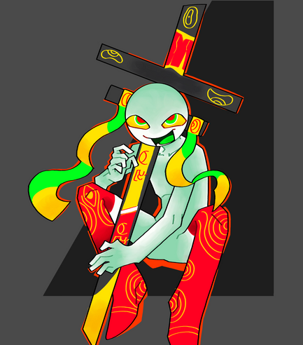 She is a purple Chinese zombieShe's a bit of a neat freak and a little confused in doing things