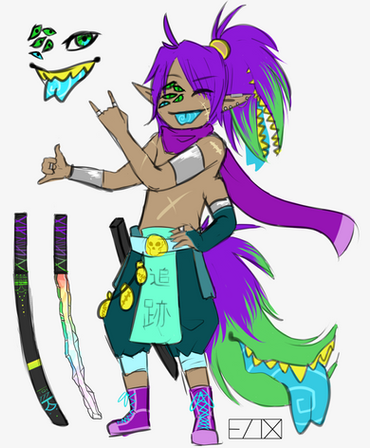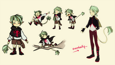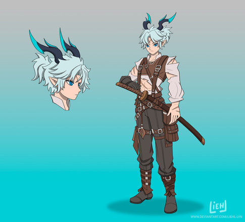 Because he is descended from a race left behind by the son of the dragon, Sebel has a pair of fleshy horns. His wrists to the outside of his forearms there were dragon scales. Since that incident, people of the race bequeathed by the son of the dragon's race were believed to have become extinct, this makes him valuable on the black market.
