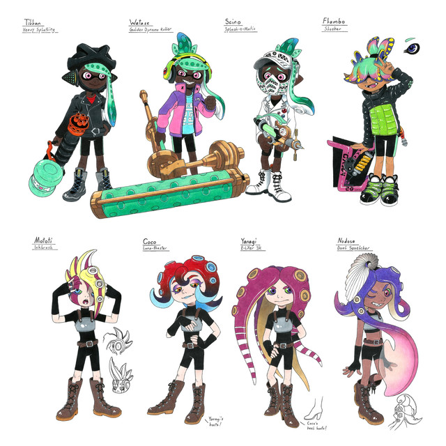 Wakosu (The name he uses in the area where the squid live)A slightly introverted octopus who rarely speaks, He claimed to be a out-of-towners so the squid language is not fluent, he has been studying squid language in cram school , When he's not working, he plays against other people, but he doesn't seem to care if he wins or loses. He only seems interested when he sees the Judd and the Lil judd.