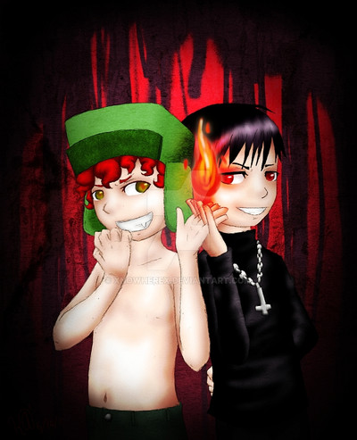 Okey A little explanation: Fry goes to the Hell..and meets the RD who thinks what Fry is a "bad boy" and for that he goes to the hell o:...and they take a ride in the roller caster together CB but Leela,Zapp and Bender don't think the same XD