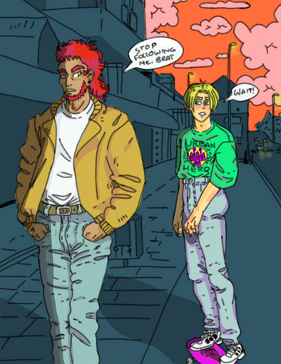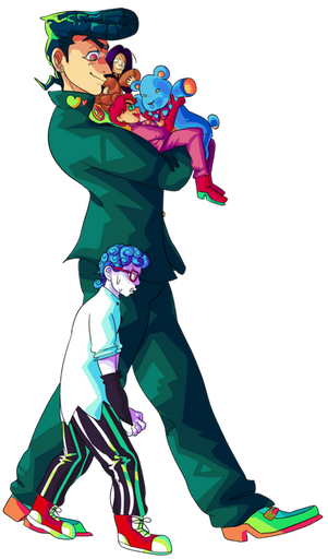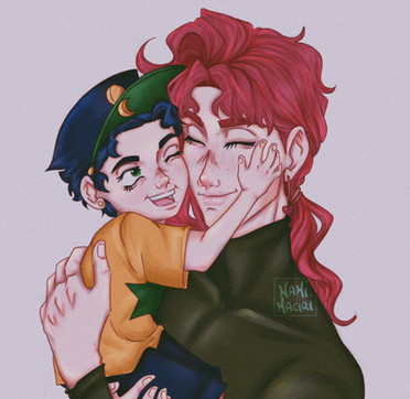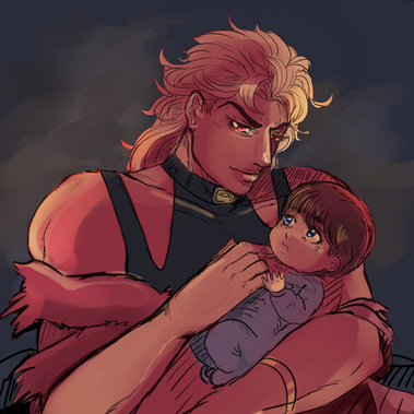 Kakyoin the single parent, running away from the Joestar family's enemies to protect his child.Just a concept.