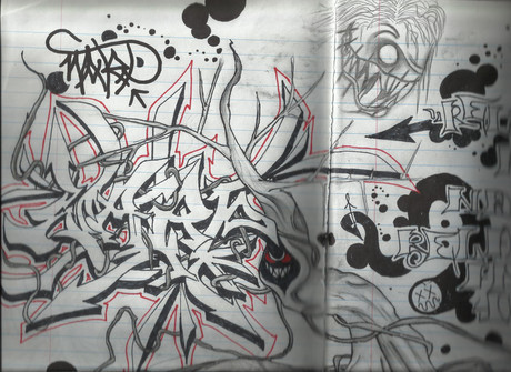 3D Mechanical Graffiti studyAcrylic + Spray Paint on wood
