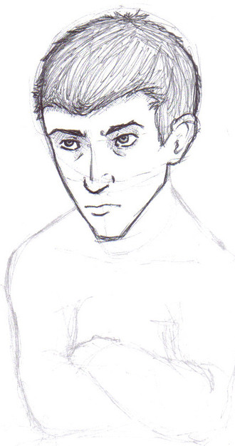just a some guys head done in biro its very crappy and his forehead is non existant lolits also tiny because i had to take a mobile picture (my scanner is bust)