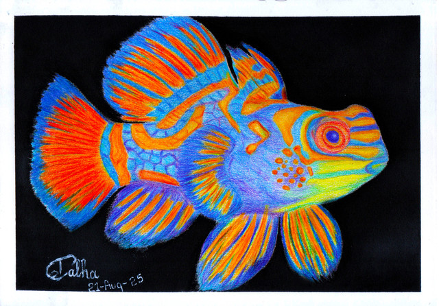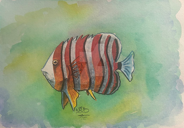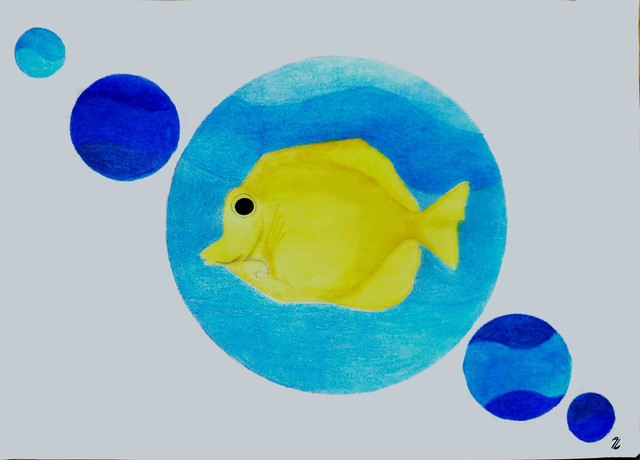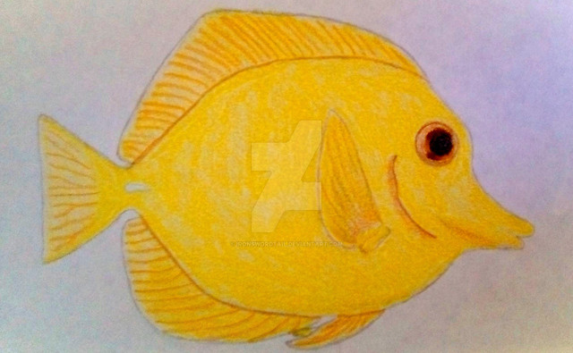 This is a picture I drew of a discus fish. They're a freshwater tropical fish that are found around the Amazon River basin, in South America. They're also popular in tropical aquariums. Looking at the various colours that they sport, it's no surprise why that's so.Related content