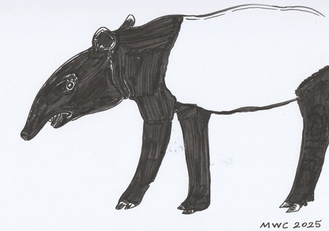 When my hubby and myself were at the Tilgate Nature Centre in Crawley, we saw a tapir in the alpaca enclosure. My hubby took a picture of it and the alpacas, so I decided to draw one too.Tapirs are a large herbivorous mammal that are a similar size and shape to a pig, with a short prehensile trunk. They're native to the forests of tropical South America and south-east Asia. All the species are endangered due to loss of habitat and slow reproduction rates.