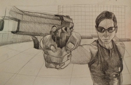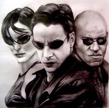 A dark pencil sketch of The Matrix movie poster.Related content