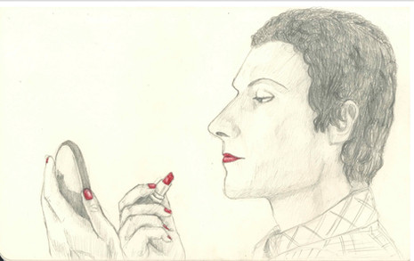 goodness. shouldn't he be shaving that, er, everything before he puts his makeup on? wonderful contrast, haha, sam...