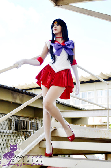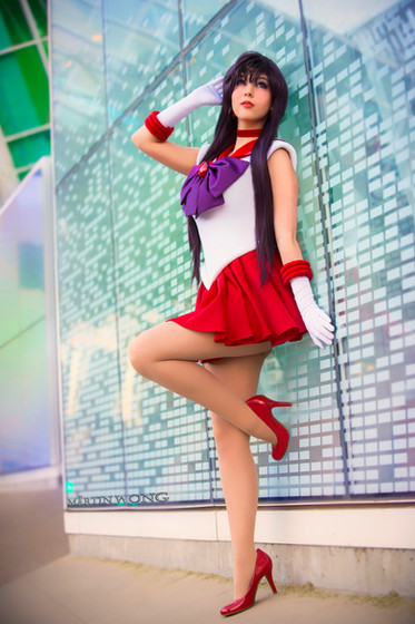 Loved your very sexy cosplay outfit of Sailor Mars from Sailor Moon, very detailed outfit and it fits you like a glove and the makeup is perfect. You're the best & sexiest cosplay of Sailor Mars I’ve seen, you done Sailor Mars justice. I am also pleased that you showed off your long lovely legs by wearing your glossy nude pantyhose with your red stiletto pumps instead of being bare legged. Please accept my feedback as merely encouragement only. Please feel free to make more lovely and cosplay with you showing off both your long sexy legs hosiery, I hope to see more in the future. Keep up the good work!