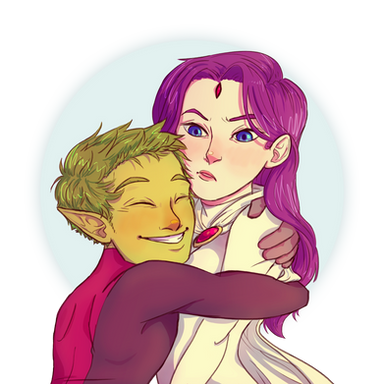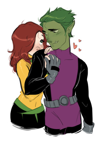 This couple would be one of the sweetest things ever. Starfire traveling the stars with her space monster fiancΓ©.