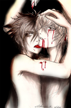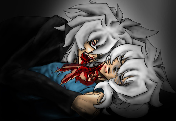 Rach after biting the neck of Mekio and drink his blood, then one day you become a vampire ... Mekio Mekio look at the young man says:"Who are you?"