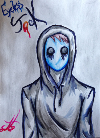 Hey! Escribí que haría más dibujos de creepypastas, así que aquí tenéis a eyeless Jack.Me gusta su máscara jijii :bademoticon: