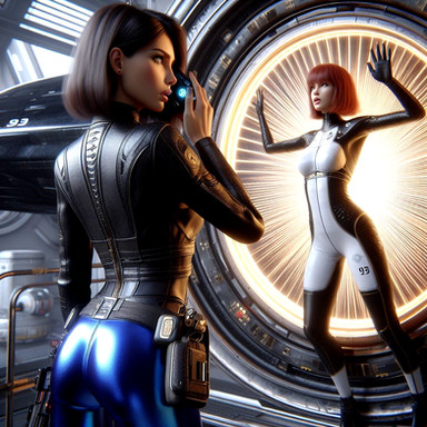 #ai #scifi #ssi #starcommand #tightpants #sexybeautiful #brunettebeauty #skintightsuit #redheadcutie #bootylicious #brainwashing