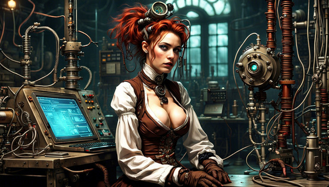 #ai #booty #bootylicious #chemicals #console #fantasy #medievalfantasy #steampunk #tightleather #sexybeautiful #brunettebeauty #steampunkfantasy #primitivecomputer
