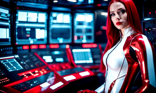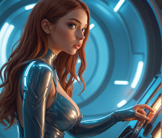 #ai #consoles #redhead #scifi #spacegirl #starcommand #femtrooper #shinysilver #sexybeautiful