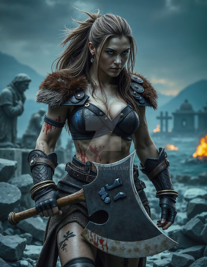 #digitalart #videogamefanart #warrior #fantasyart #fighter #warriorwoman #characterdesign #portrait #beauty #fantasycharacter #badass #barbarian #viking #axe #battleaxe #bleedingheart #shieldmaiden #strongfemale #muscularwoman