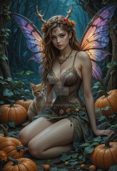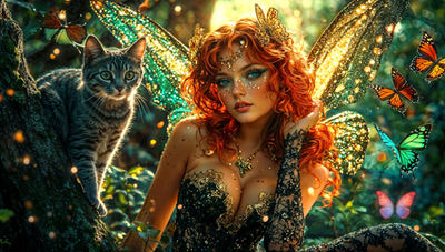 #beauty #magic #fantasyart #fairy #digitalart #fantasycharacter #forest #fairytale #portrait #wallpaper #glamour #beautifulredhead #butterfly #cat #glade #tabby