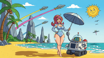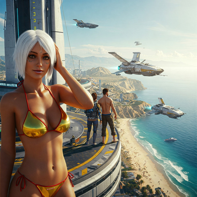 #scifi #beach #spaceship #characterdesign #beauty #cat #tabby #redheadbeauty