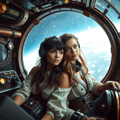 #scifi #digitalart #space #beauty #brunette #fox #orbiter #redhead #shuttlebay #sexybeautiful