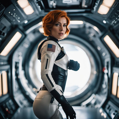 #scifi #astronaut #digitalart #space #spaceship #redhair #characterdesign #wallpaper #escapepod #tightclothes #redheadbeauty #skintightsuit