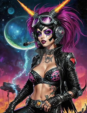 #scifi #digitalart #cyberpunk #space #neon #fanart #warrior #cat #flipthebird #fuckoff #gesture #tabby #redheadbeauty