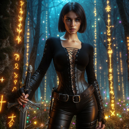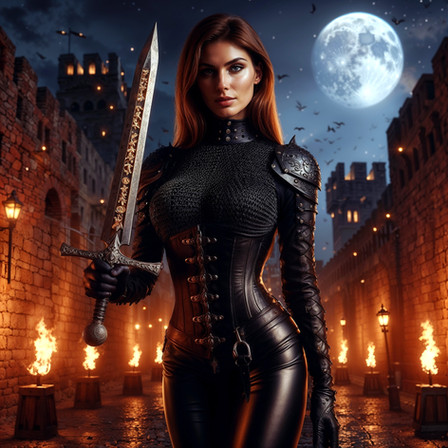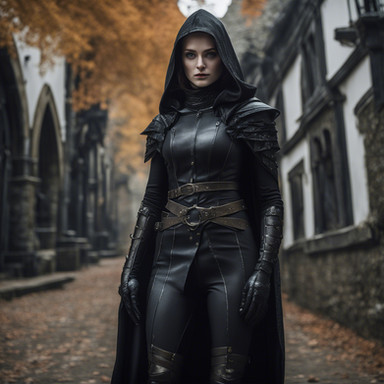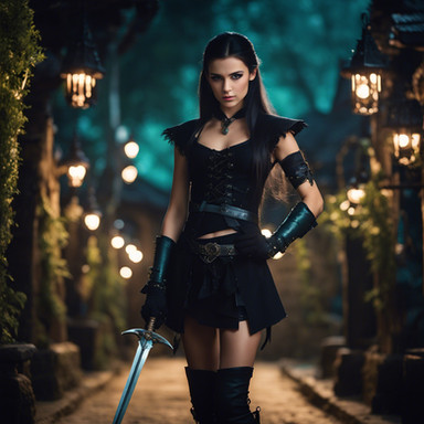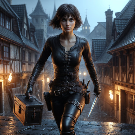 #ai #citadel #fantasy #guildmistress #medievalcity #thief #longdagger #medievalfantasy #sexybeautiful #brunettebeauty #gorgeousbeauty #blackleatheroutfit