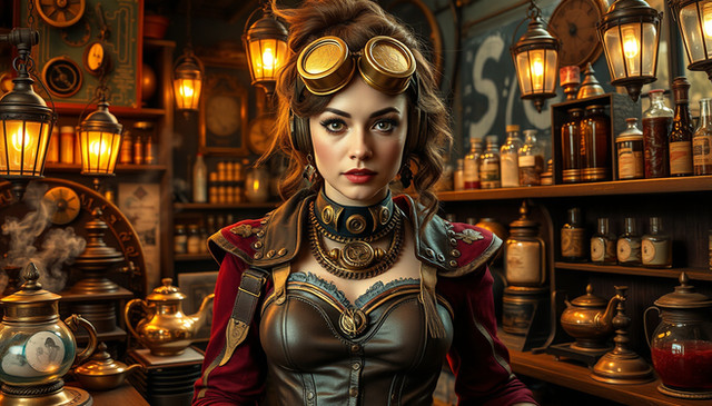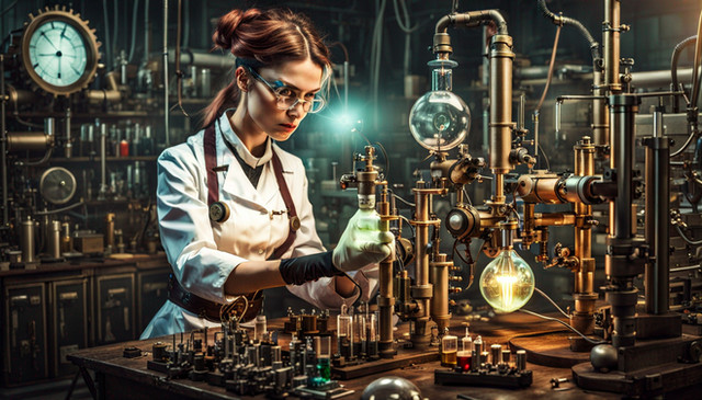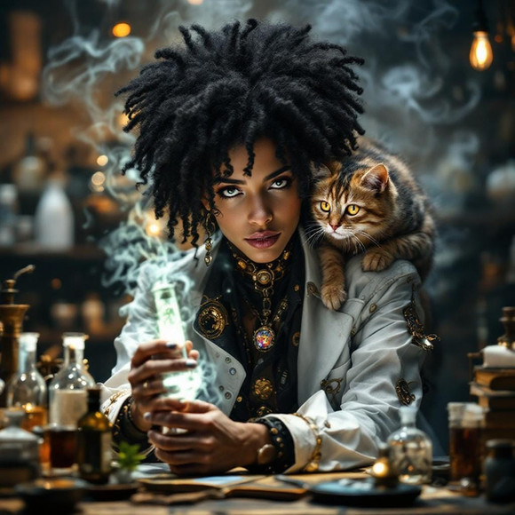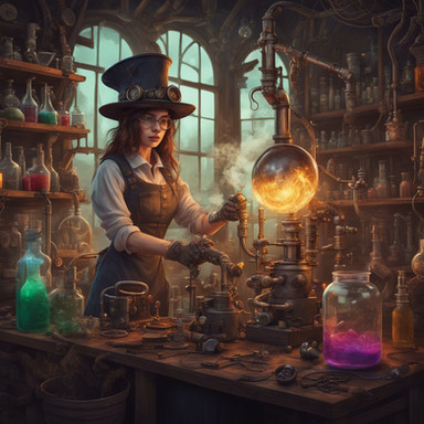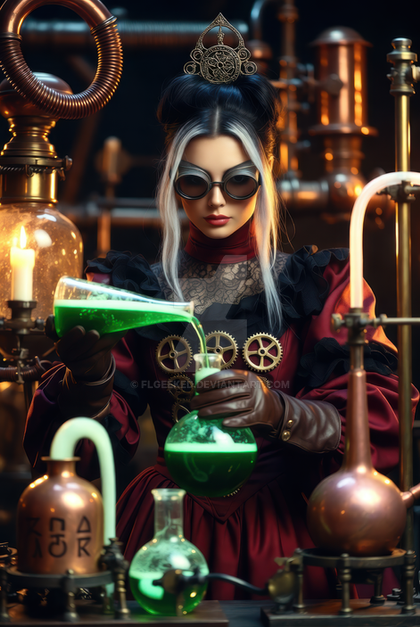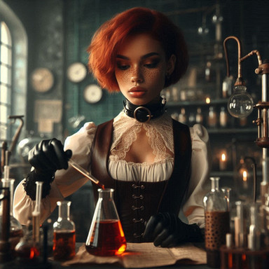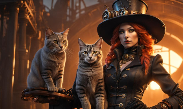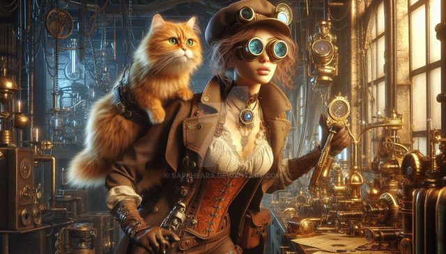 #digitalart #wallpaper #characterdesign #cat #chemicals #lab #madscience #steampunk #tabby #brunettebeauty