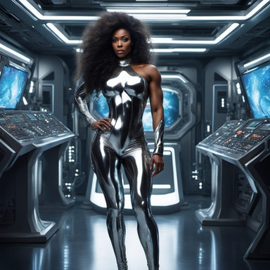 Art worked I forgot to upload at the end of the Audacity narrative, the epilogue that introduced the character of Keisha, sister to Druann Richardson, who would become the Empress of the Galaxy. She would make the perfect subject for Shiny Silver Sunday. She is so stunning... how could I have forgotten her?Related content