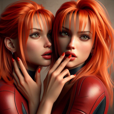 #ai #lesbian #redhead #latexfetish #lesbianromance #lesbiancouple #sexybeautiful #redheadbeauty #skintightsuit #latexbodysuit