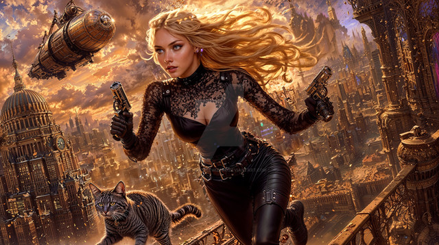 #warrior #wallpaper #digitalart #scifi #anime #characterdesign #portrait #digitalpainting #gun #badass #beauty #cat #dieselpunk #raygun #steampunk #tabby #blondebeauty #gundrone #gorgeousbeauy