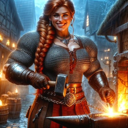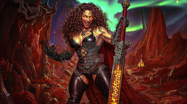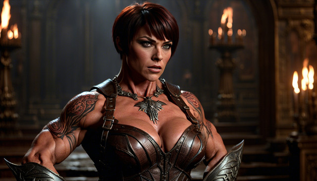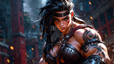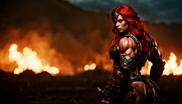 #warrior #warriorwoman #fantasycharacter #redhair #digitalart #beauty #fantasyart #characterdesign #barbarian #city #cleavage #femalemuscle #fighter #leatherpants #mace #portrait #ruin #skulls #smoke #strongwoman #videogamefanart #viking #wallpaper #redheadbeauty #strongbeauty #fire