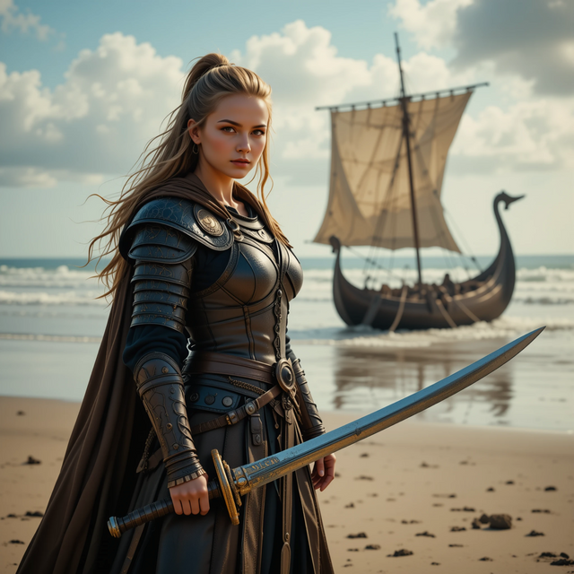 #ai #history #longboat #runesword #shieldmaiden #storm #stormy #viking #waves #blondebeauty #sexybeautiful #gorgeousbeauty #bandedleather