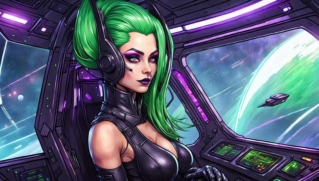 #fanart #videogamefanart #digitalart #scifi #wallpaper #space #asianbeauty #purplehair #purplehairgirl #spaceship
