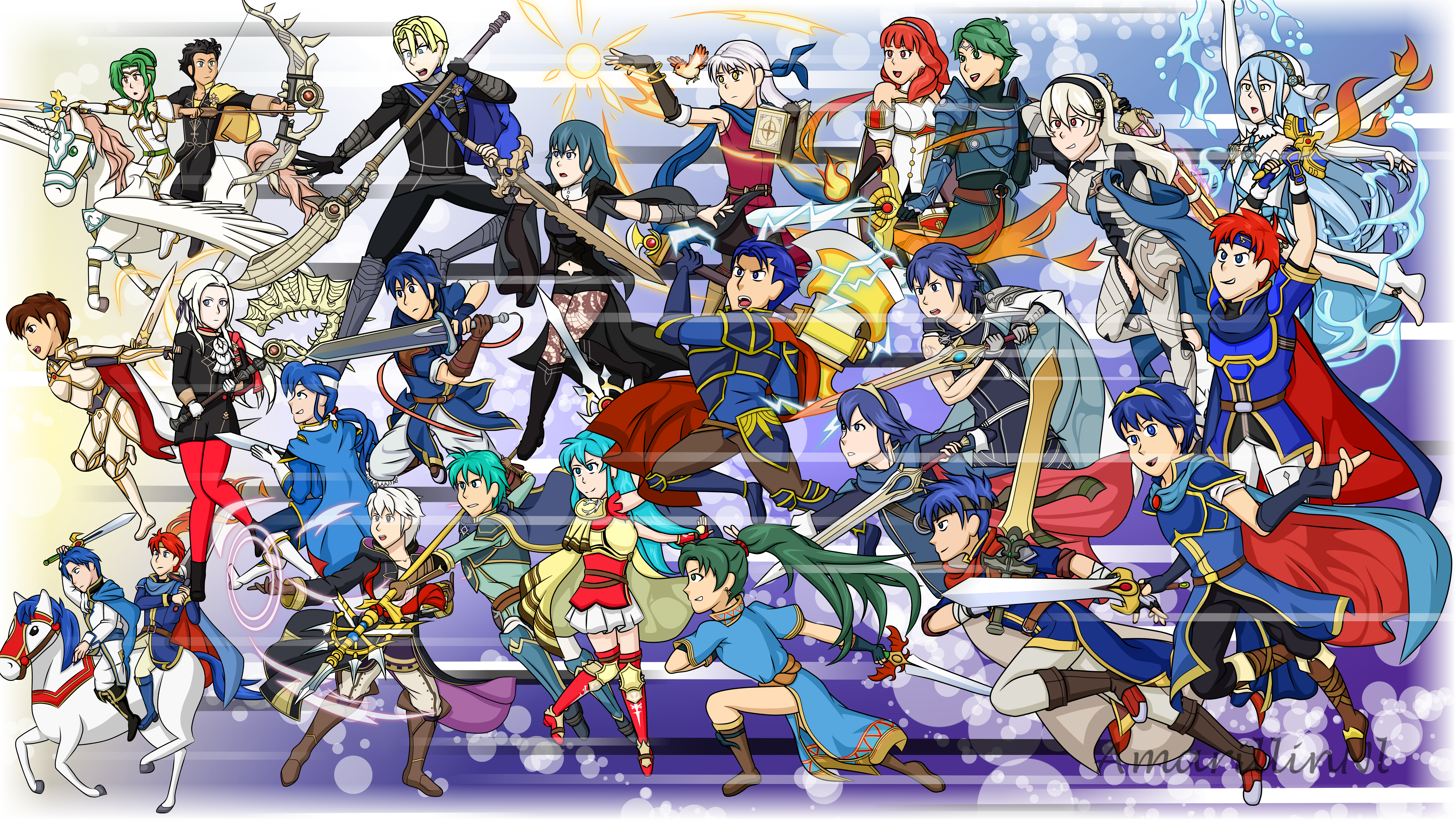 Well this was a long time coming. I was hesitate to do this one seeing as how only half of the characters' full body portraits were revealed, thankfully their were enough of those that it's not that noticeable who's body is cut off. I really love playing Fire Emblem Echoes so I really wanted to do one of these. Everyone's art comes your their status portraits. (except for Deen, there was no way to put that one on without noticing it's cut off).Enjoy!