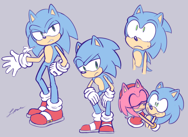 Had a bad art block funk awhile back and so I took that to instead just practice posing and drawing in different angles. Sonic and Amy are simplest and easiest for me so they make for good bases.Characters (C) Sonic the Hedgehog