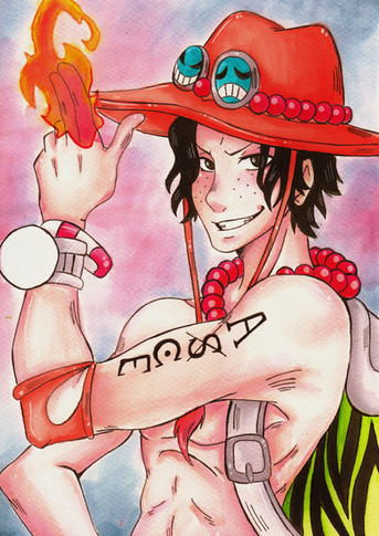 One piece character Ace in watercolors and pen. Write your comment if u like itRelated content