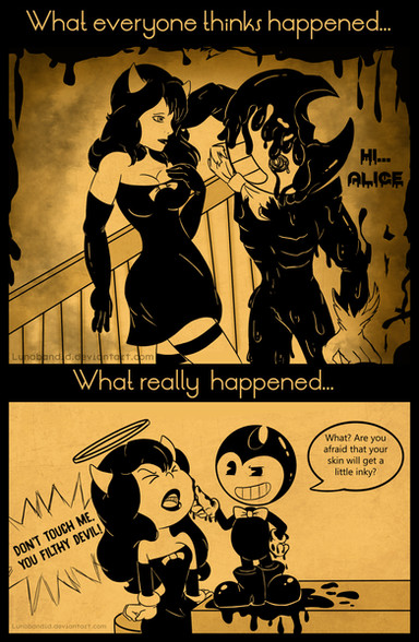 Bendy the Ink demon, Alice Angel and the whole Bendy universe belongs to TheMeatly Games