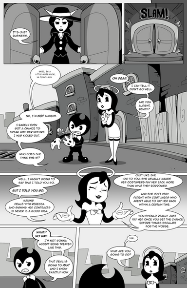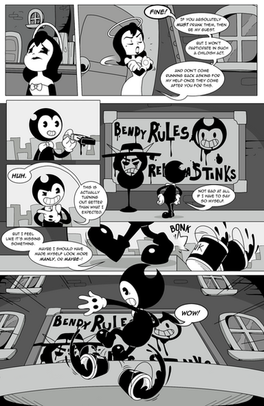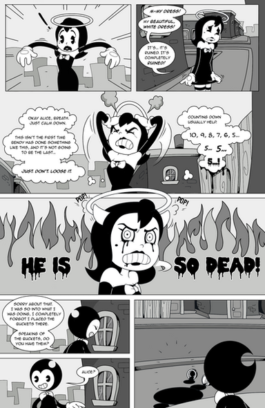 Annnd... the "Bendy this is a bad idea" thing has finally hit the fan. Bendy you, uh, dropped a couple of buckets of ink on your voice of reason, you are in deep trouble now. And GOD I relate to Alice a lot in this comic and man do I hope things get somewhat better for her soon. That's probably not going to happen, but I can still wish.