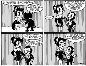 Bendy the Ink demon, Alice Angel and the whole Bendy universe belongs to TheMeatly Games