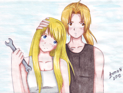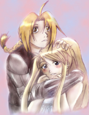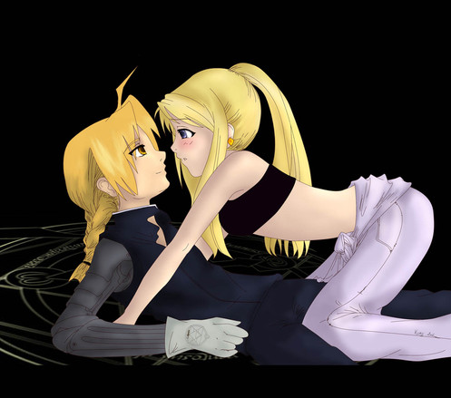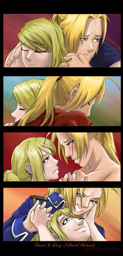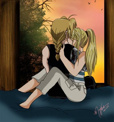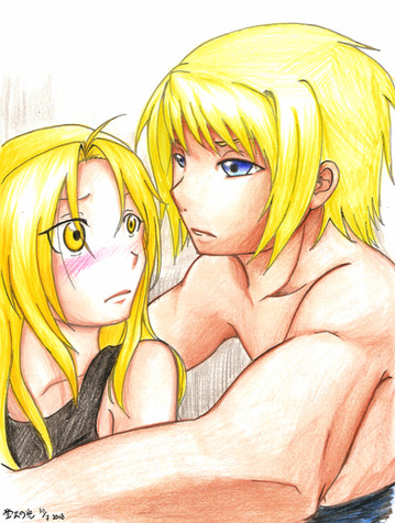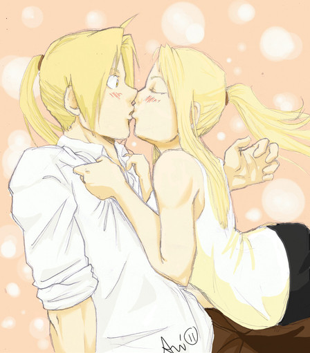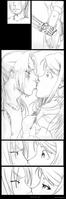 By the way, drawing kissing people has always been a pain for me. I still think Ed isn't quite Ed and there's something wrong with Winry as well. Any tips are welcome!