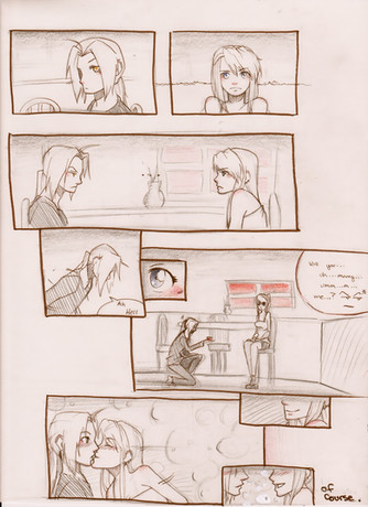 panel 1: gah, this panel sucks in many ways. I've tried to draw Edward with the expression I had in mind about 10 times. I failed miserably and gave up... which is the worst thing to do, but well
