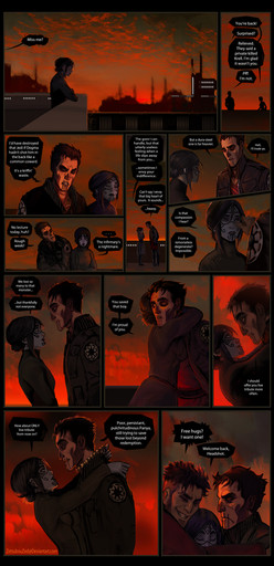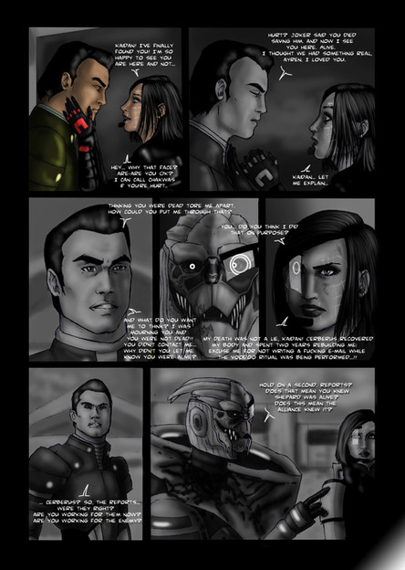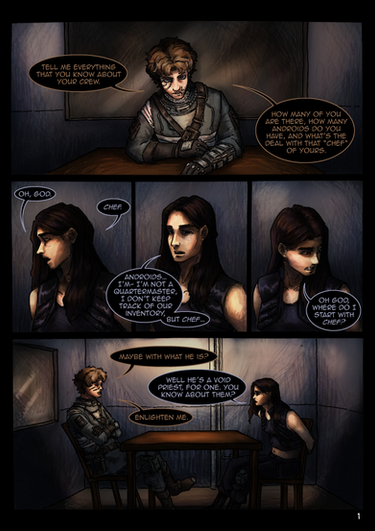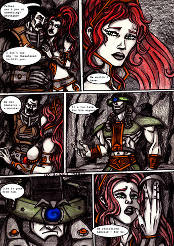 This was a for comic strip uni projct, and I chose mine to be an extract from the book Mortal Engines by Phillip Reeve. It's the part where Shrike (or Grike to you american folks) tells Hester his 'hearts desire' which apparently is to kill her and have her resurrected as a stalker. nifty.So this is the first of three pages. I know it's not quite exactly as the book is, I had to cut a few lines here and there to fit it into three pages.