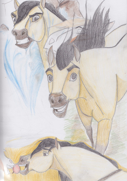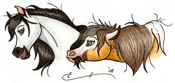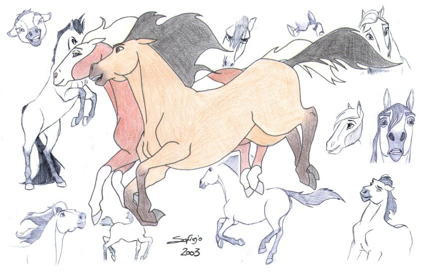 Horses have to be the most difficult animal to draw - you did this so well!!! Awesome job Sofie :3 Spirit and Rain look very fluid and full of movement ^^